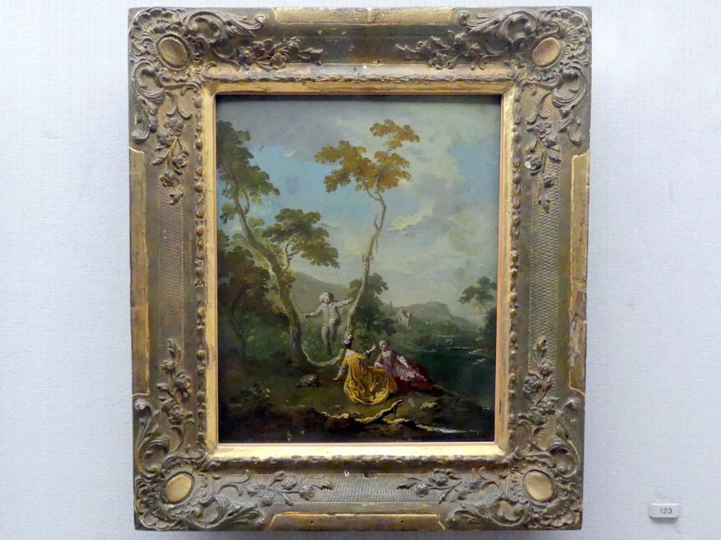 Dame auf der Schaukel (Galante Szene im Park I)