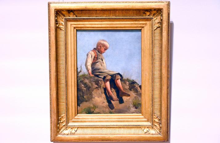 Knabe in der Sonne am Feldrain sitzend