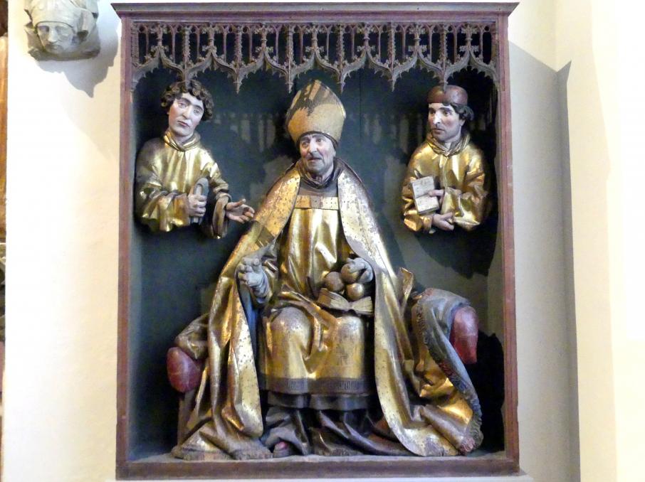 Hl. Nikolaus und Büsten von zwei Diakonen