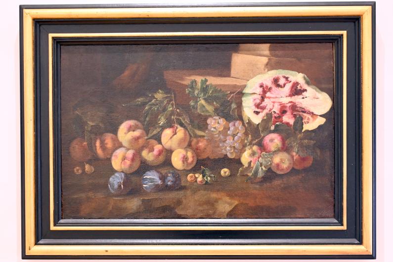 Stillleben mit Wassermelone, Feigen, Pfirsichen und Äpfeln