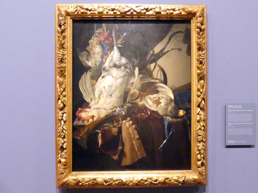 Stillleben mit erlegten Vögeln und Jagdgeräten