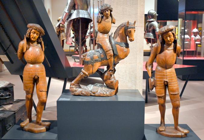 Hl. Georg und zwei Ritterheilige, Friedberg, Burg Friedberg, jetzt Darmstadt, Hessisches Landesmuseum, Waffensaal, um 1510–1520