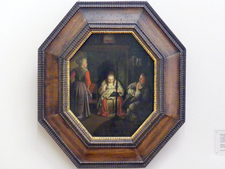 Nähende Frau, Kavalier und Magd bei Kerzenlicht