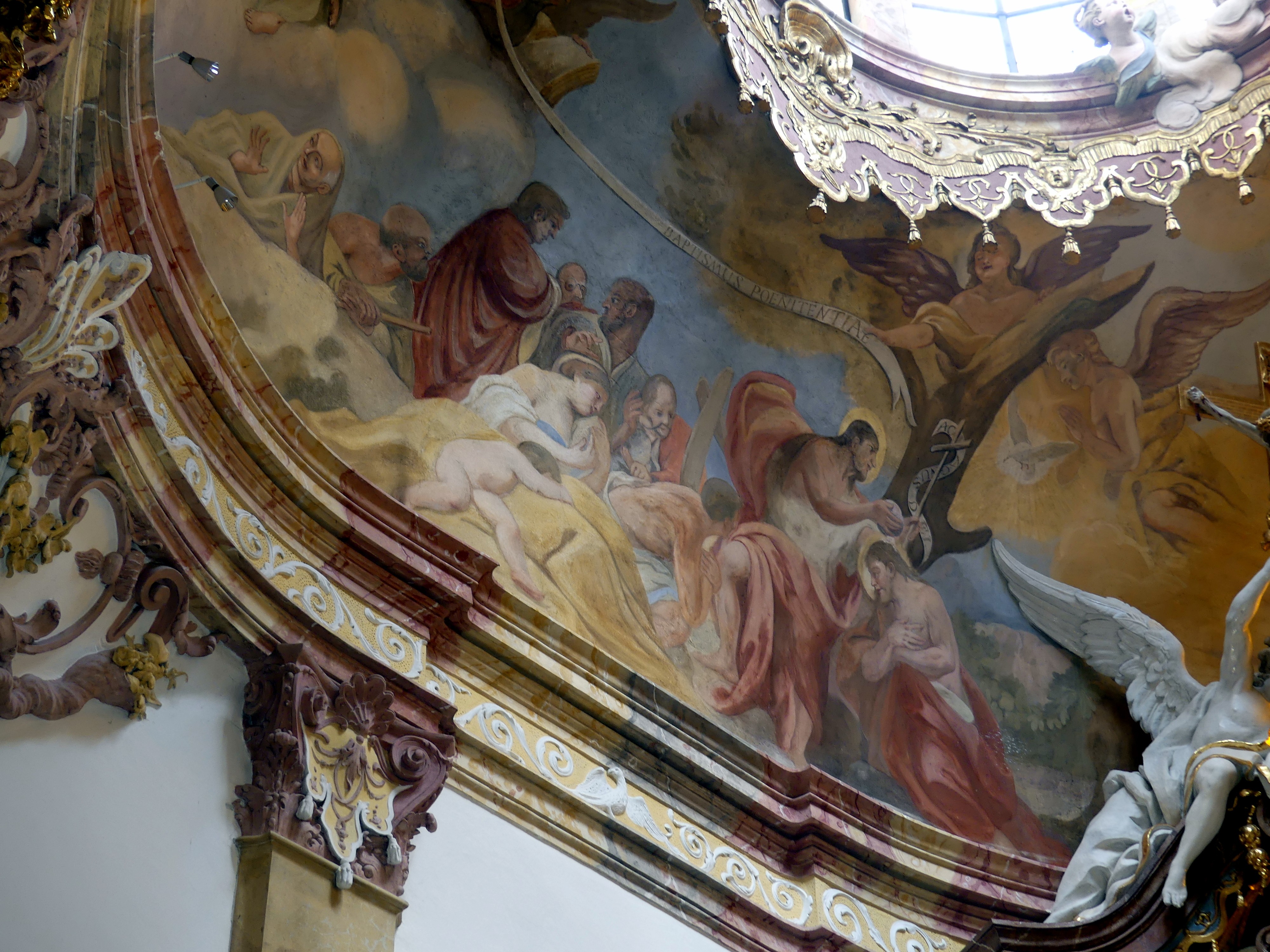 Fresko Die Tugenden des Hl. Korbinian an der Westpartie des Mittelschiffgewölbes
