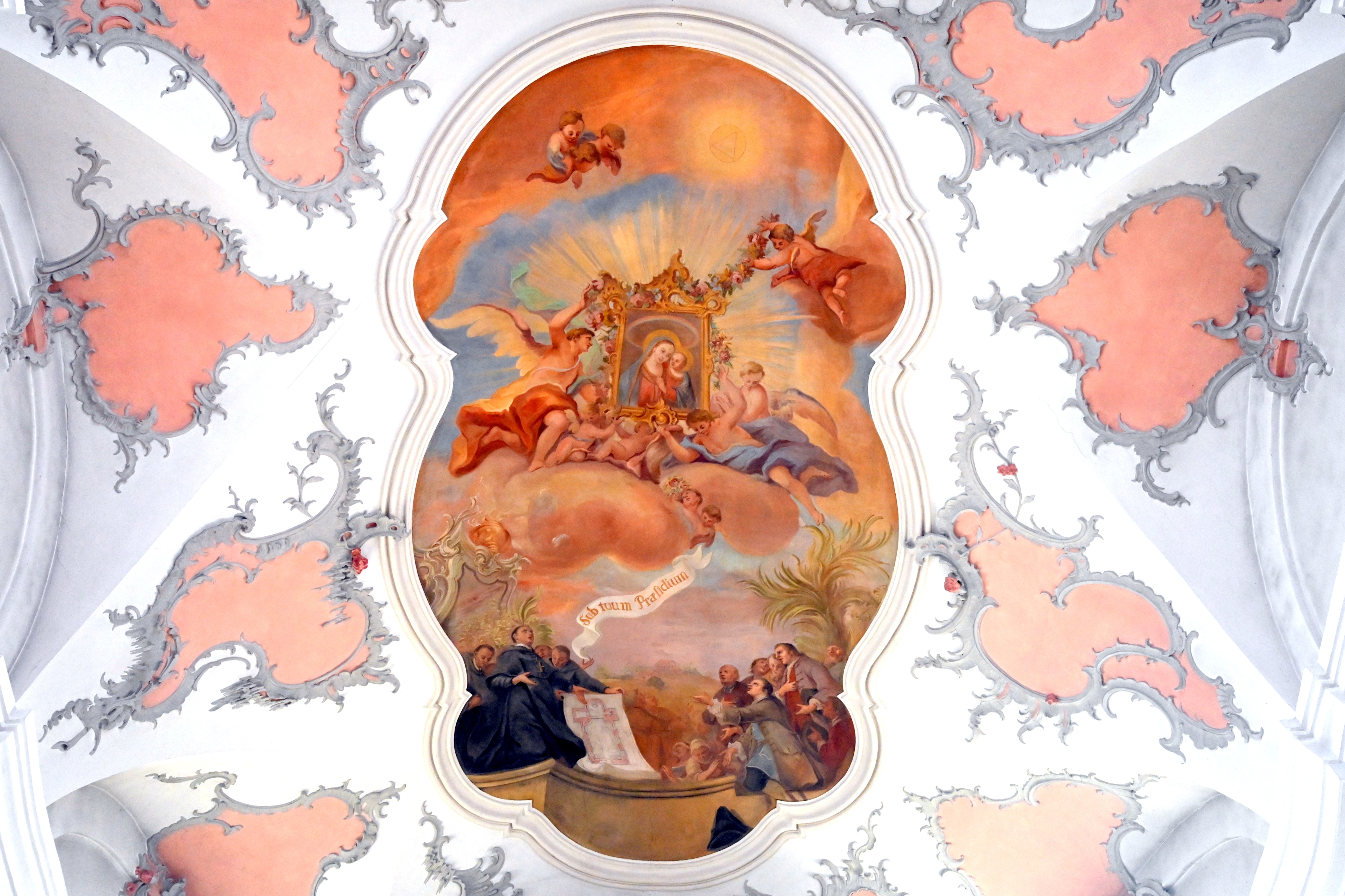 Chorfresko "Abt Petrus stellt die Pfarrei unter den Schutz des Hohenschambacher Gnadenbildes"