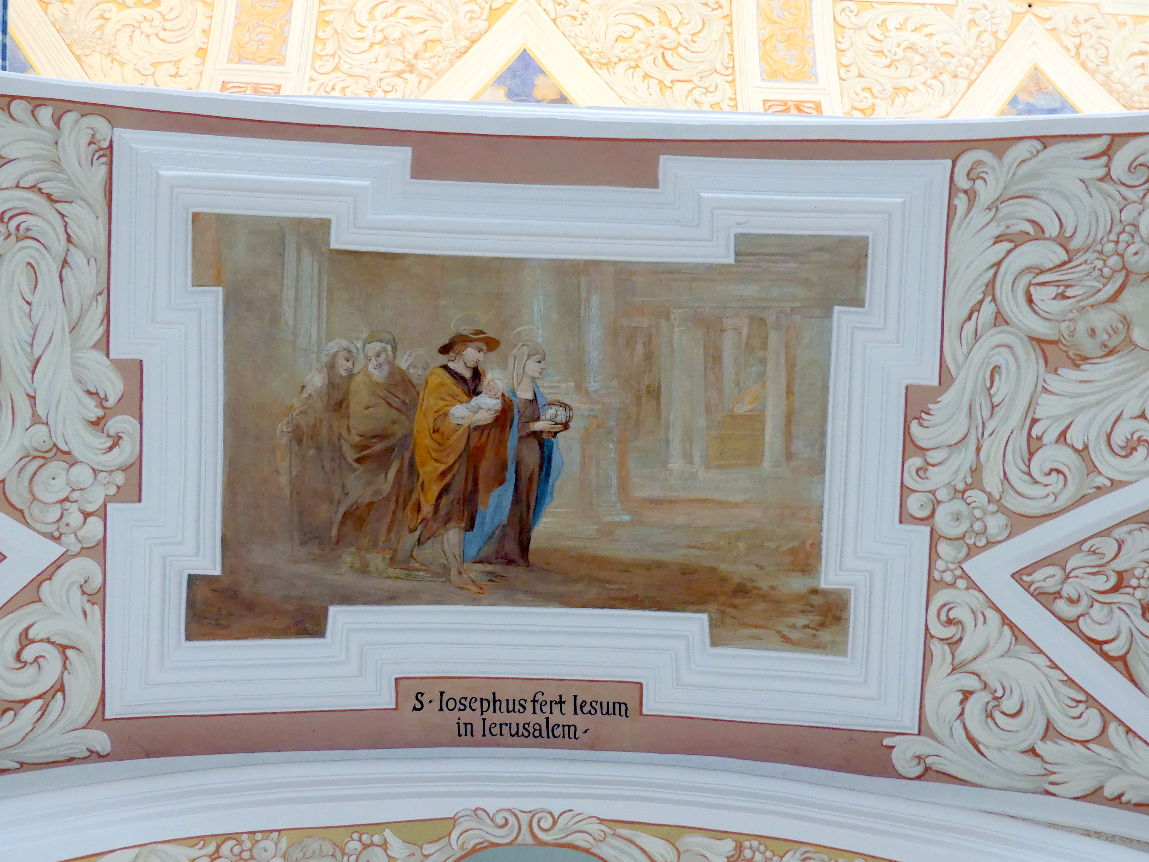 Joseph trägt das Kind zum Tempel