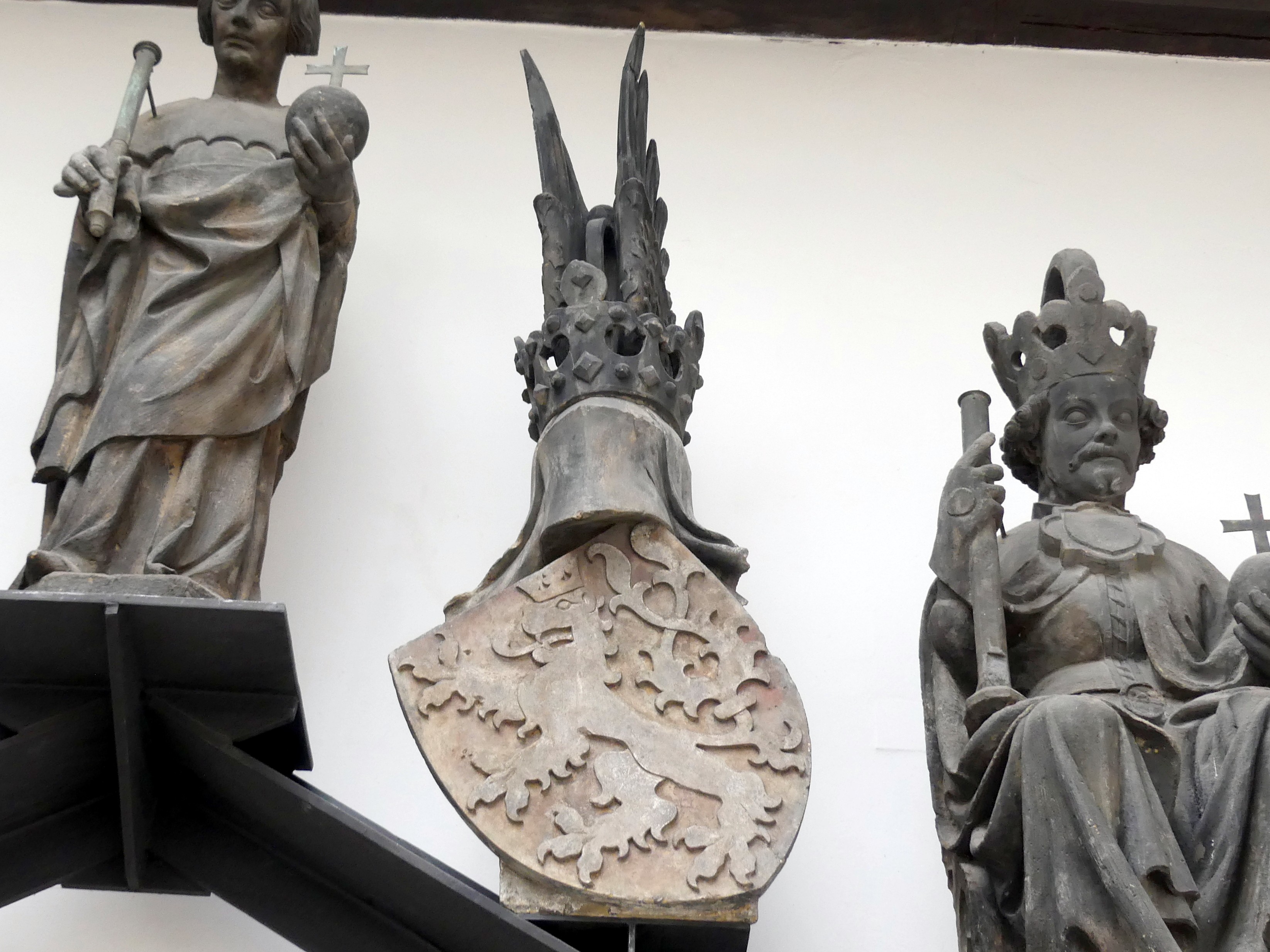 Wappen des Königreichs Böhmen, vom Altstädter Brückenturm, Werkstatt Peter Parler, Prag um 1380, Sandstein