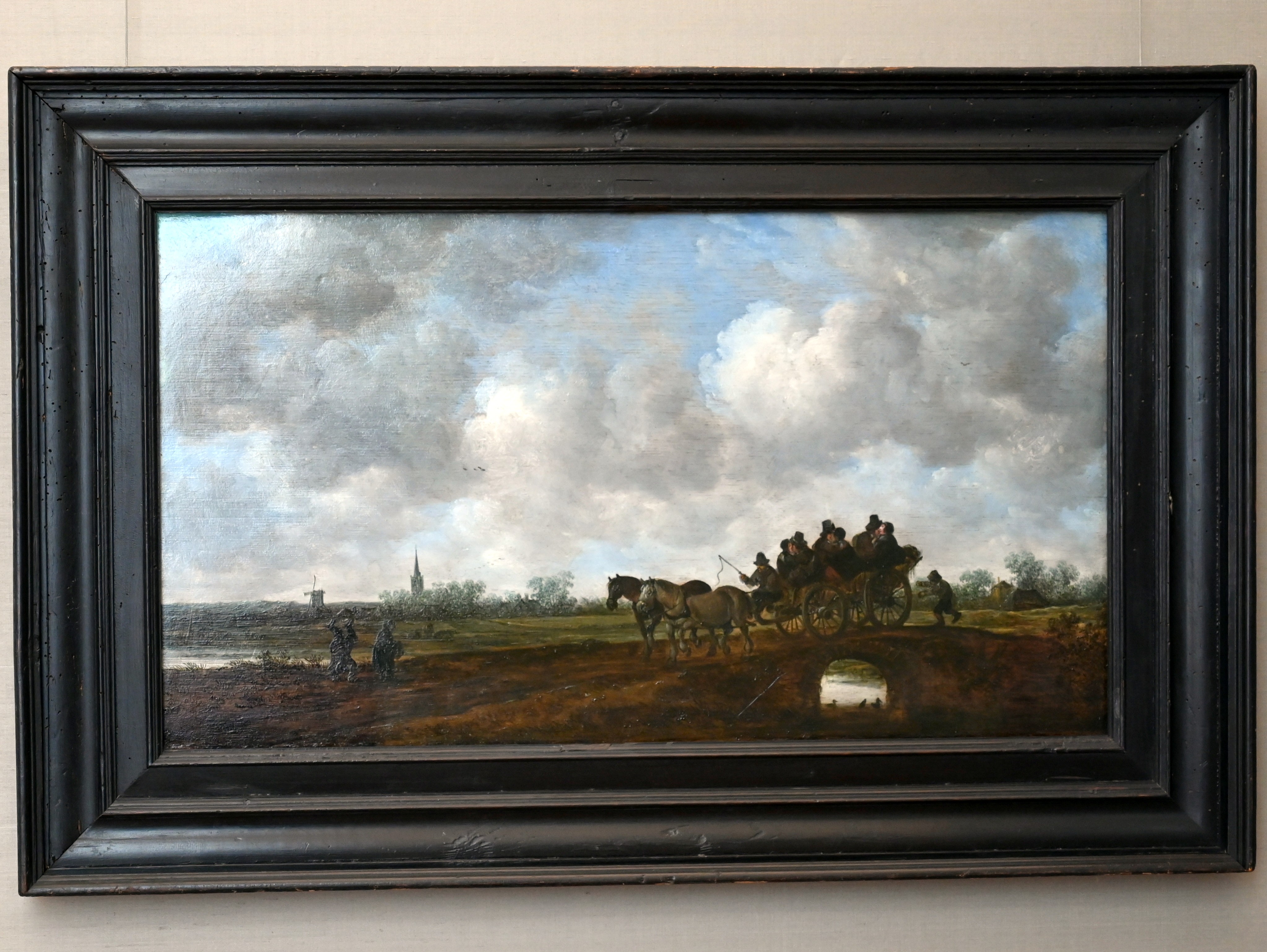 Landschaft mit Pferdewagen auf einer Brücke
