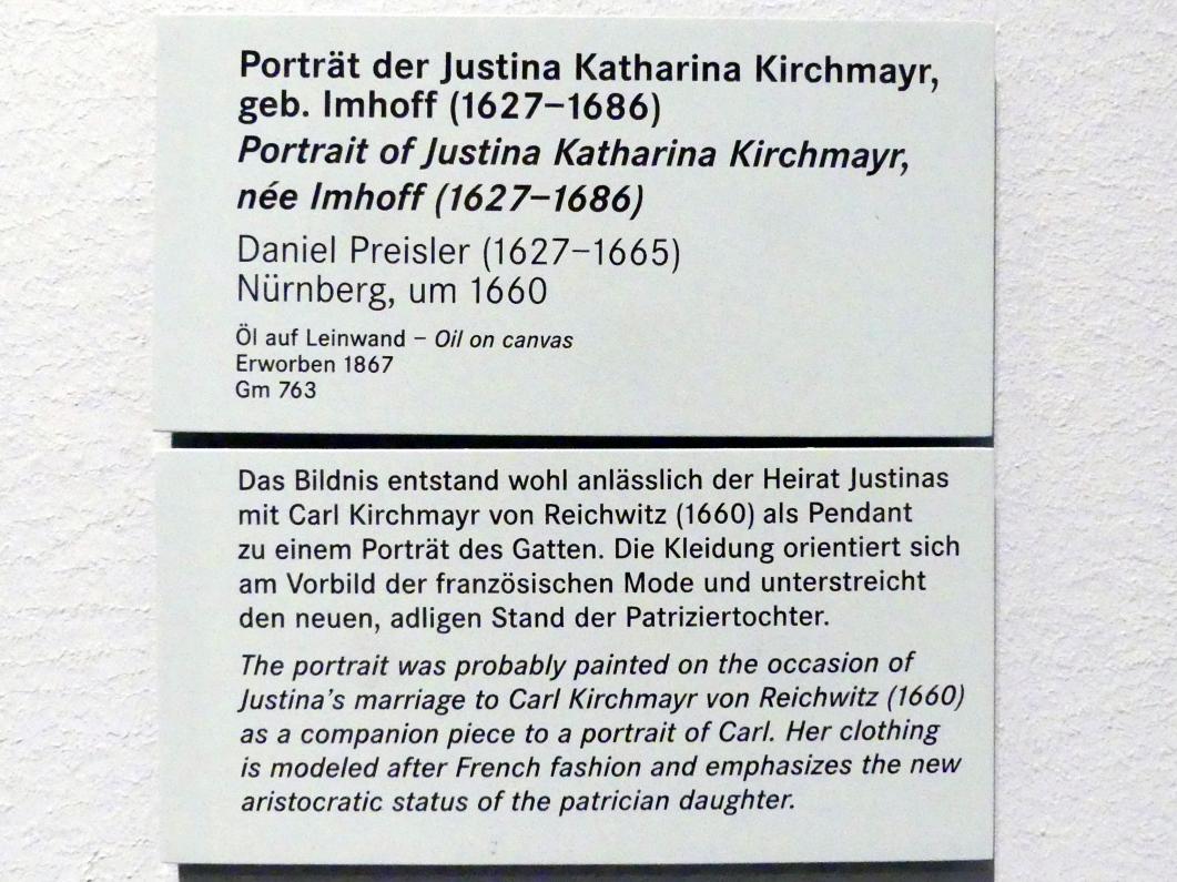 Porträit der Justina Katharina Kirchmayr, geb. Imhoff (1627-1686)