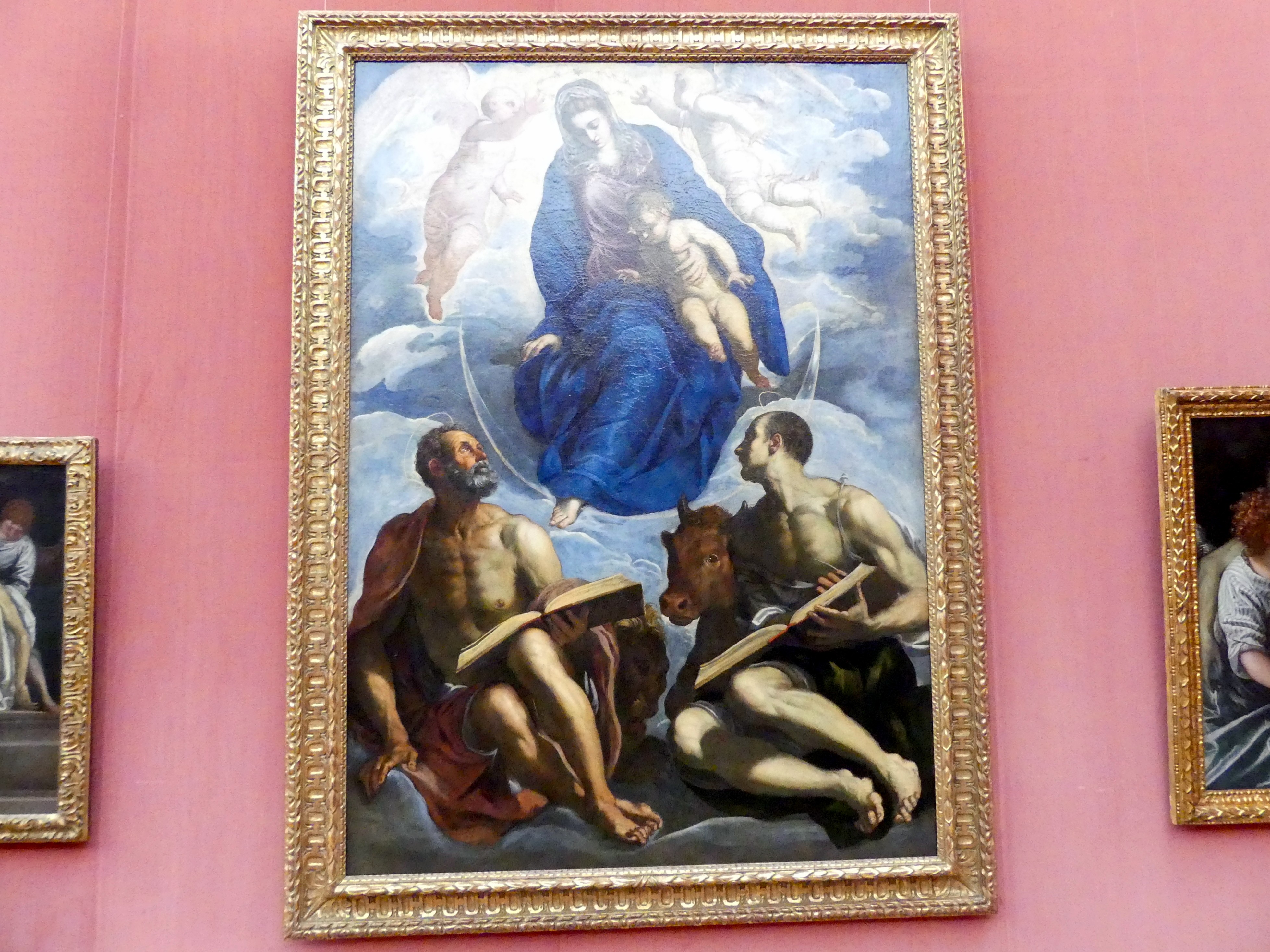 Maria mit dem Kind, von den Evangelisten Markus und Lukas verehrt