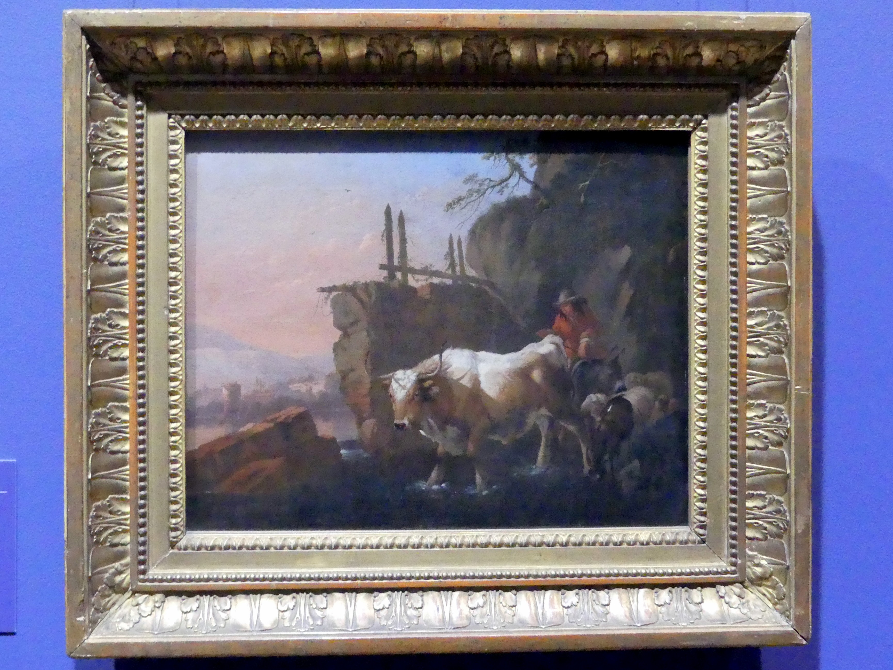 Hirten mit Vieh an einer Furt