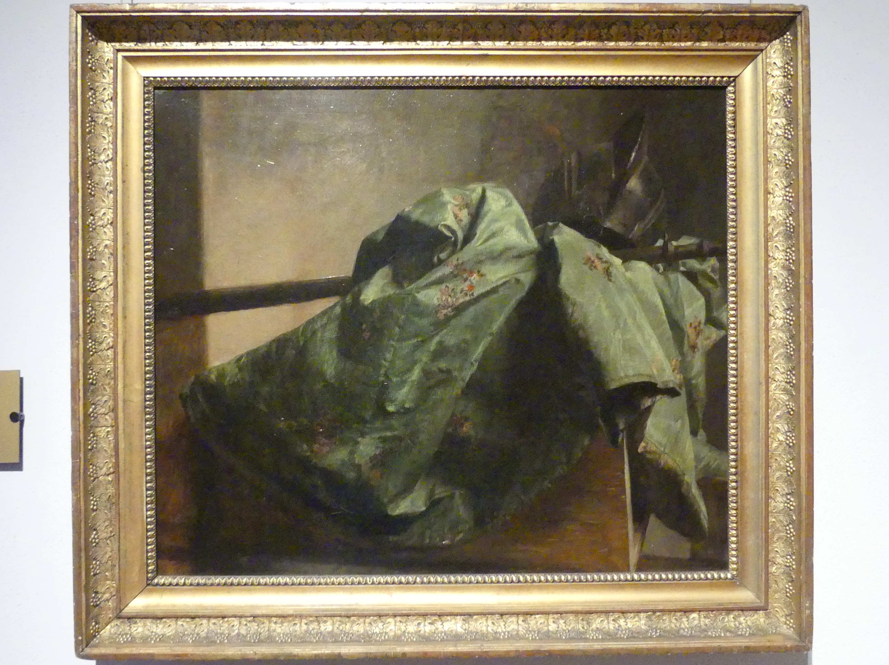 Stillleben mit Seidentuch und Helm