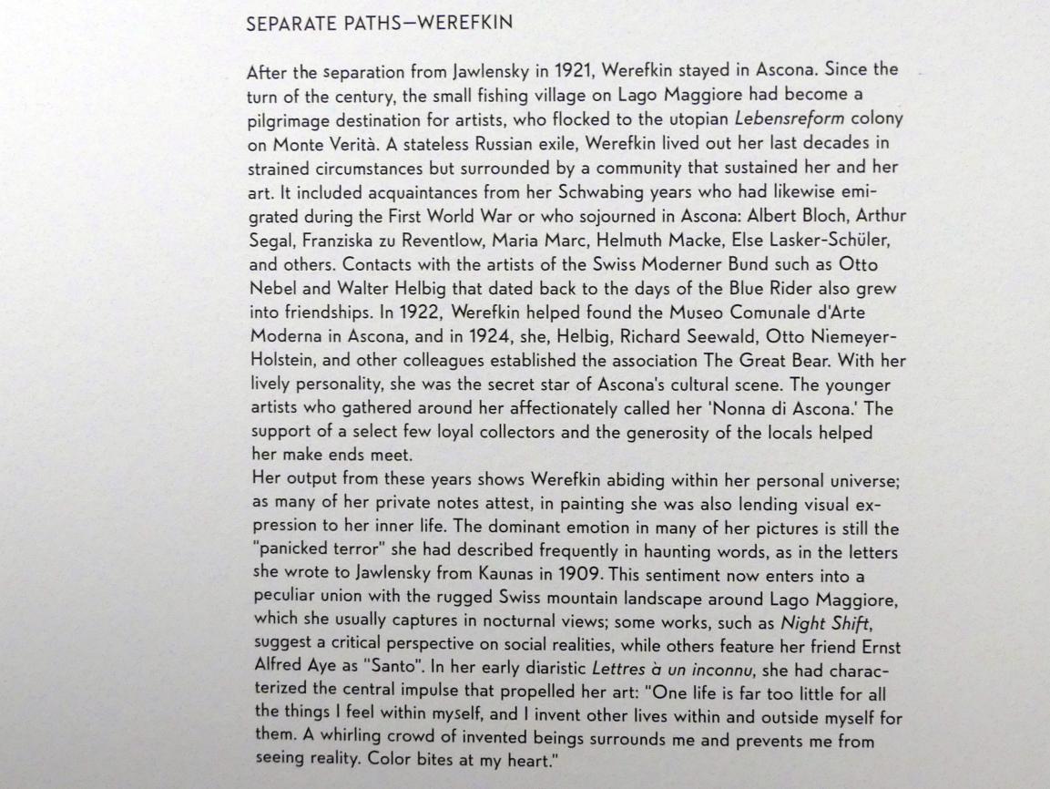 München, Lenbachhaus, Kunstbau, Ausstellung "Lebensmenschen" vom 22.10.2019-16.02.2020, Getrennte Wege ab 1921, Werefkin