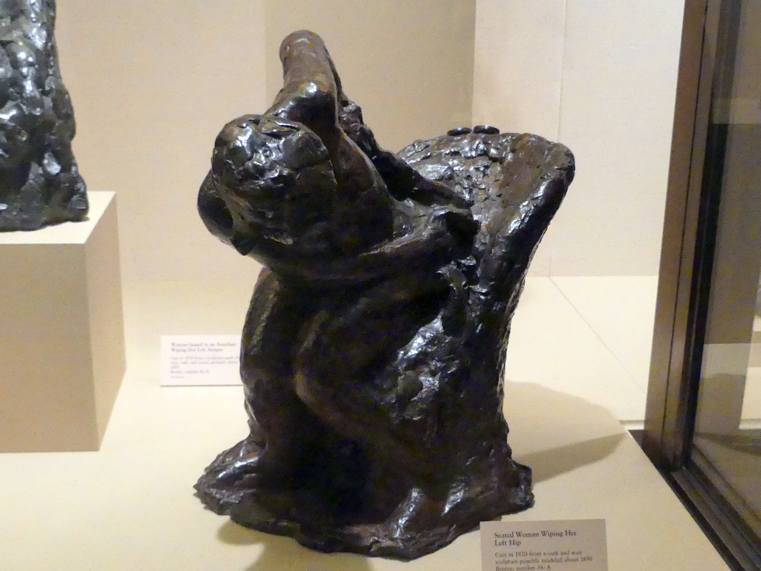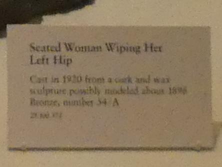 Sitzende Frau, ihre linke Hüfte wischend