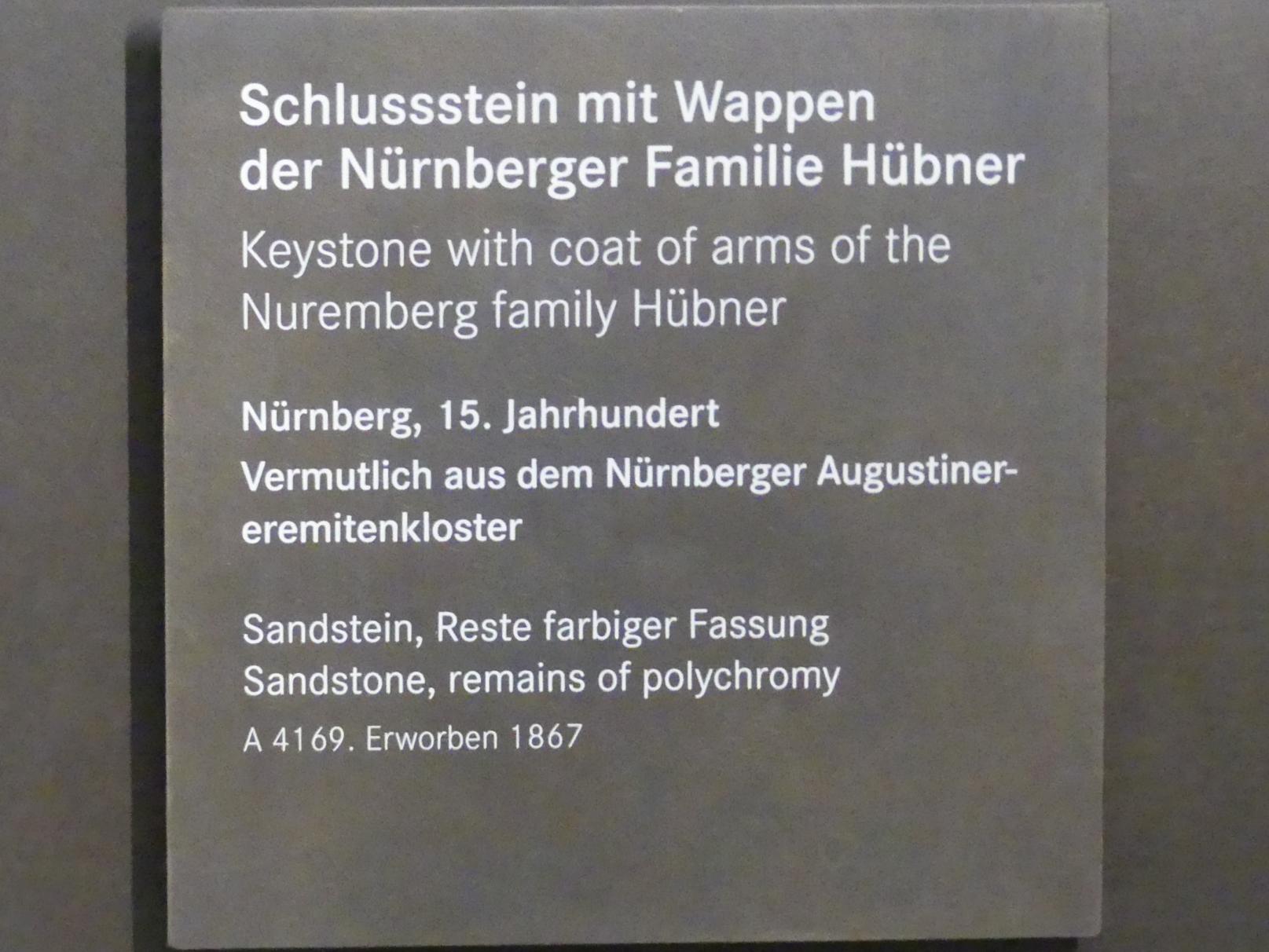 Schlussstein mit Wappen der Nürnberger Familie Hübner
