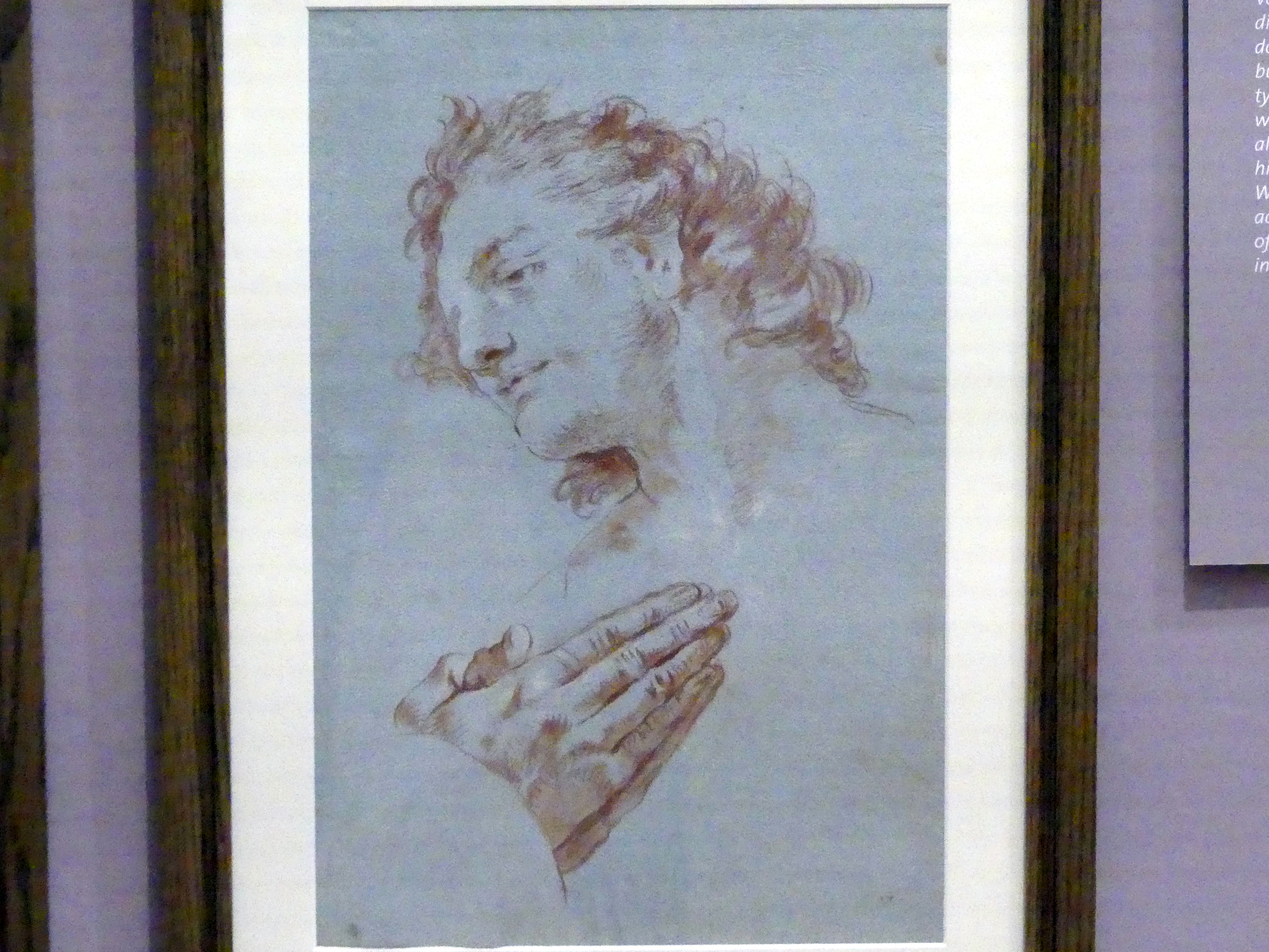 Kopf eines Jünglings in Dreiviertelansicht und betende Hände