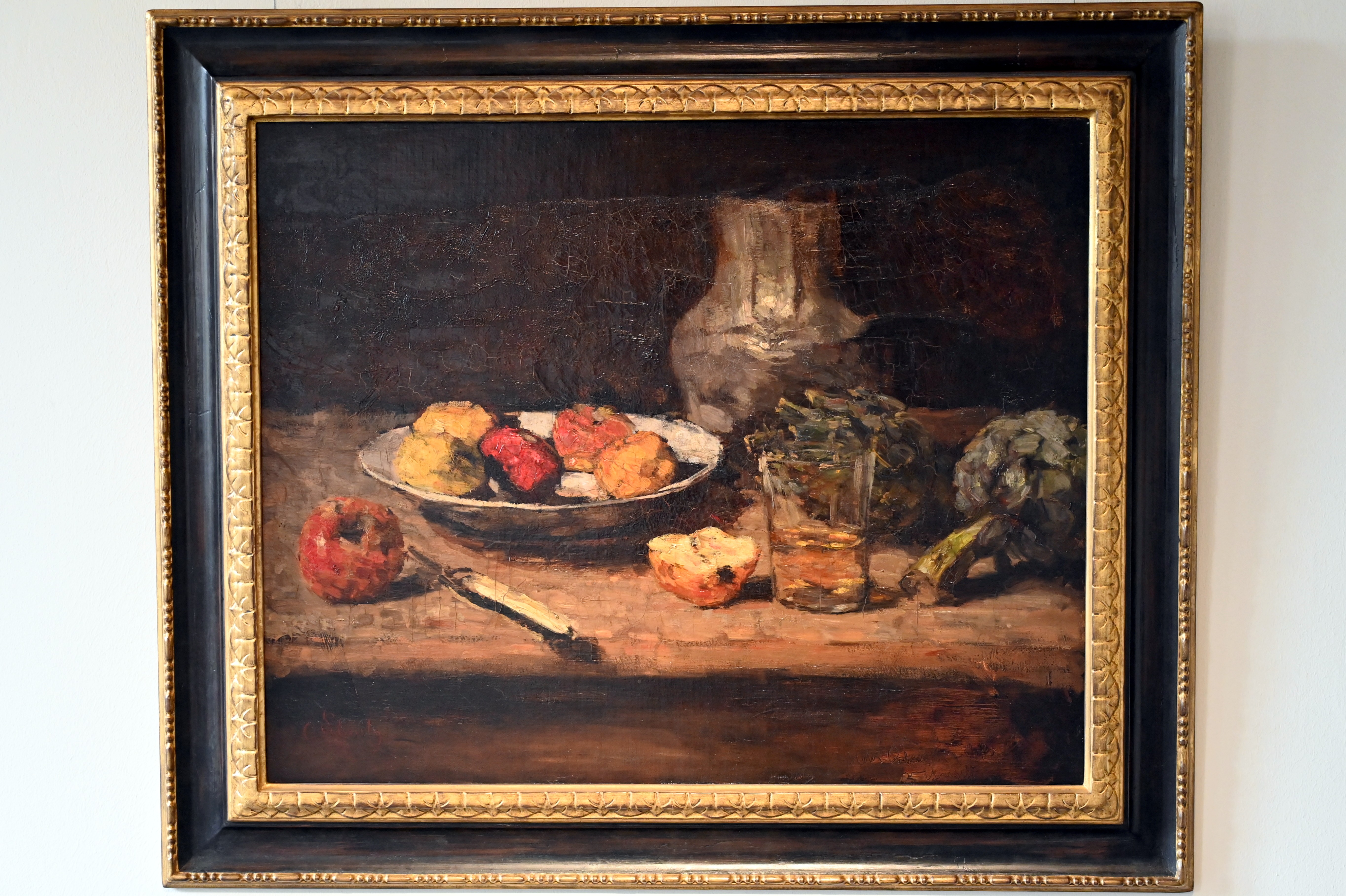 Stillleben mit Krug, Glas und Obstschüssel