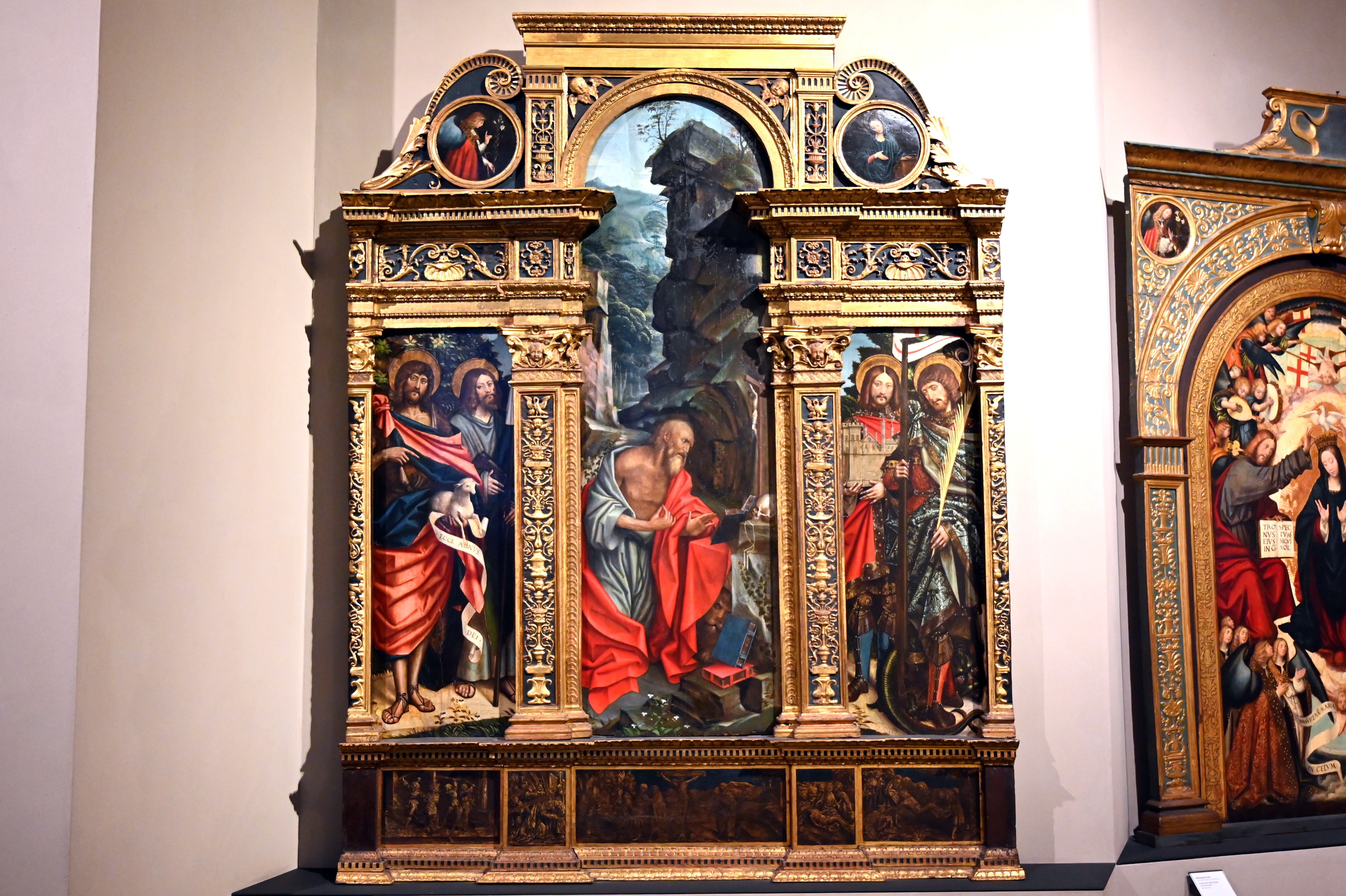 Polyptychon mit dem Heiligen Hieronymus, Heiligen, Verkündigung und Passionsszenen