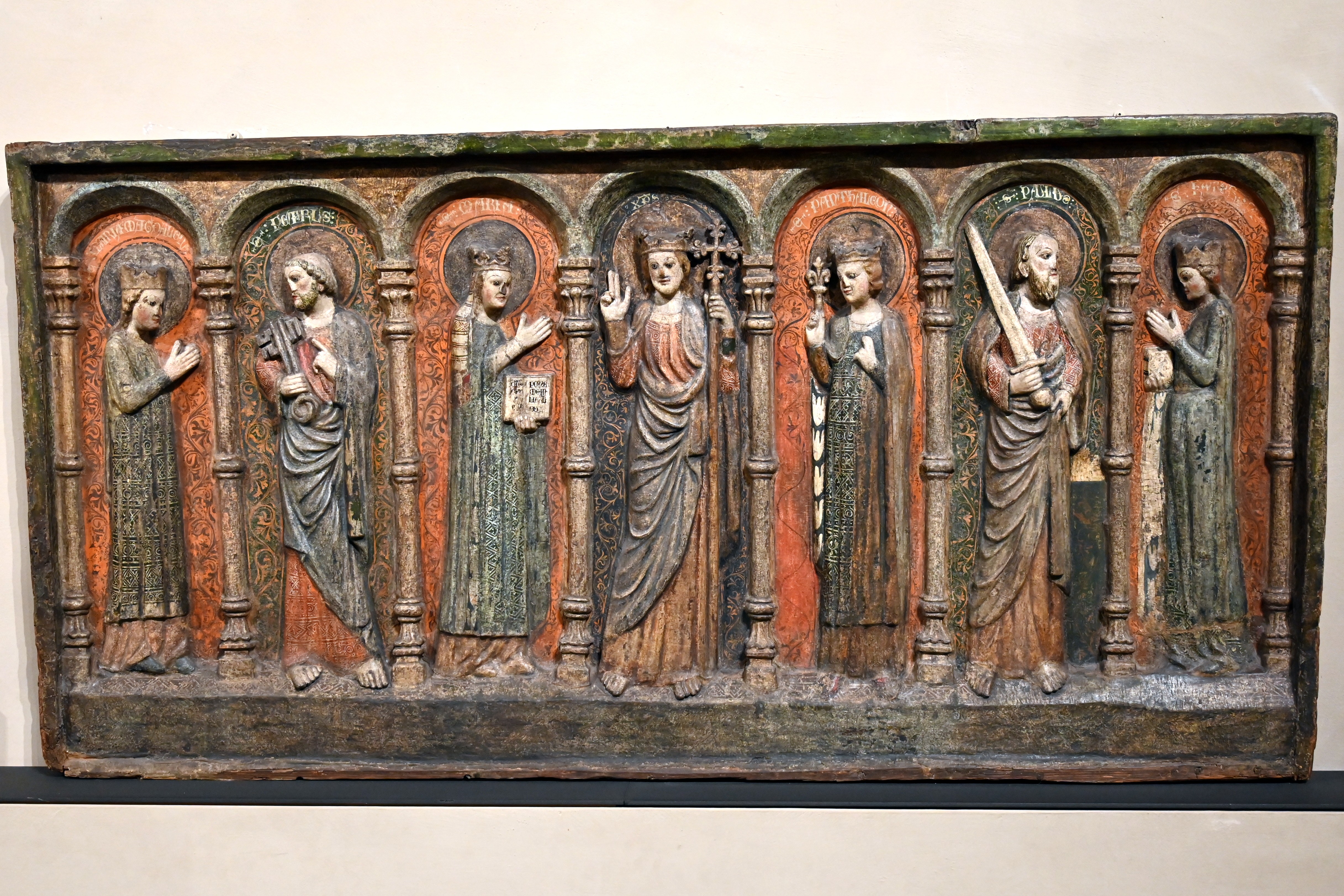 Antependium mit Christus, der Jungfrau Maria und den Heiligen Magdalena, Petrus, Pantaleon , Paulus und Katharina