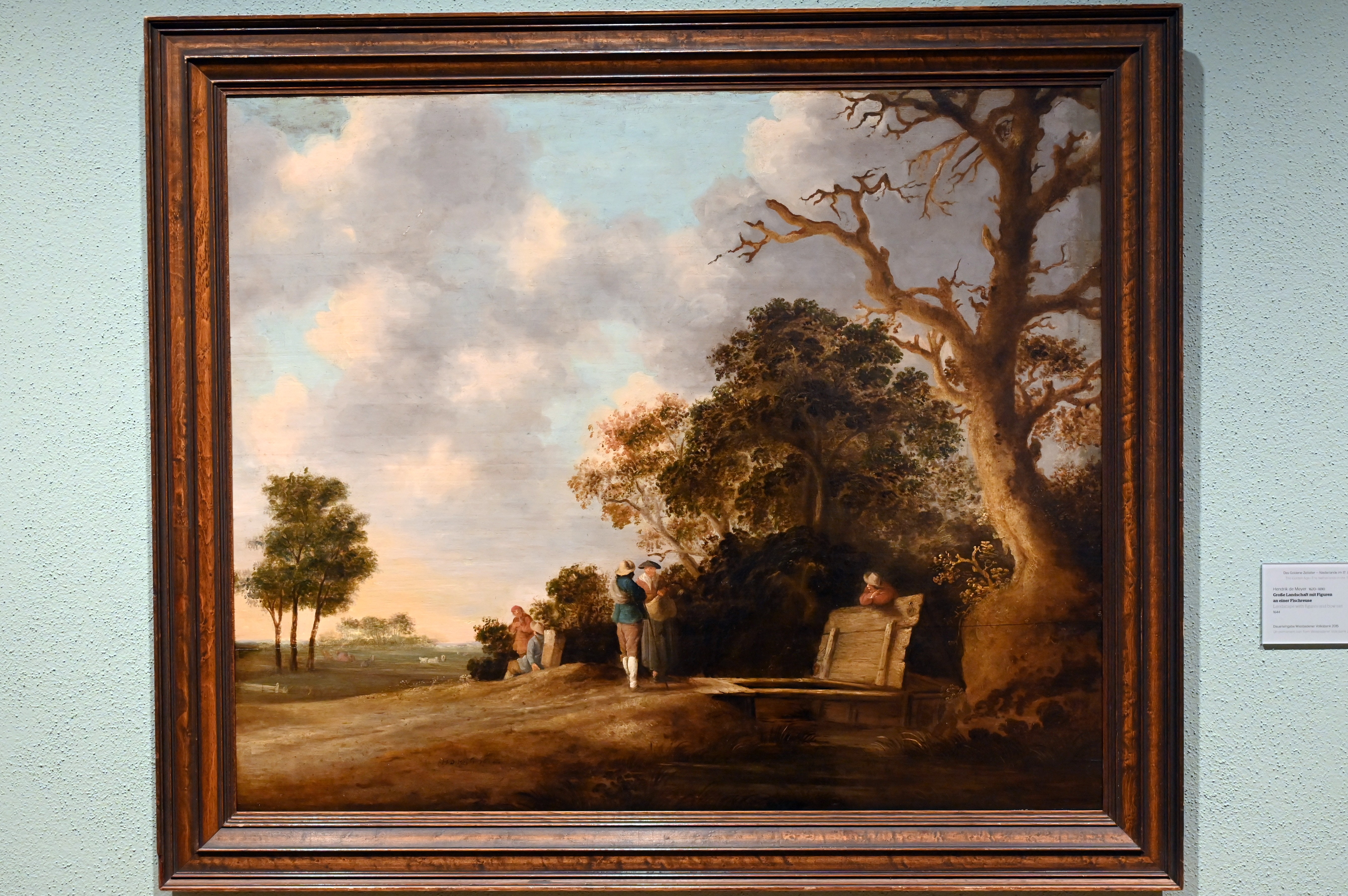 Große Landschaft mit Figuren an einer Fischreuse