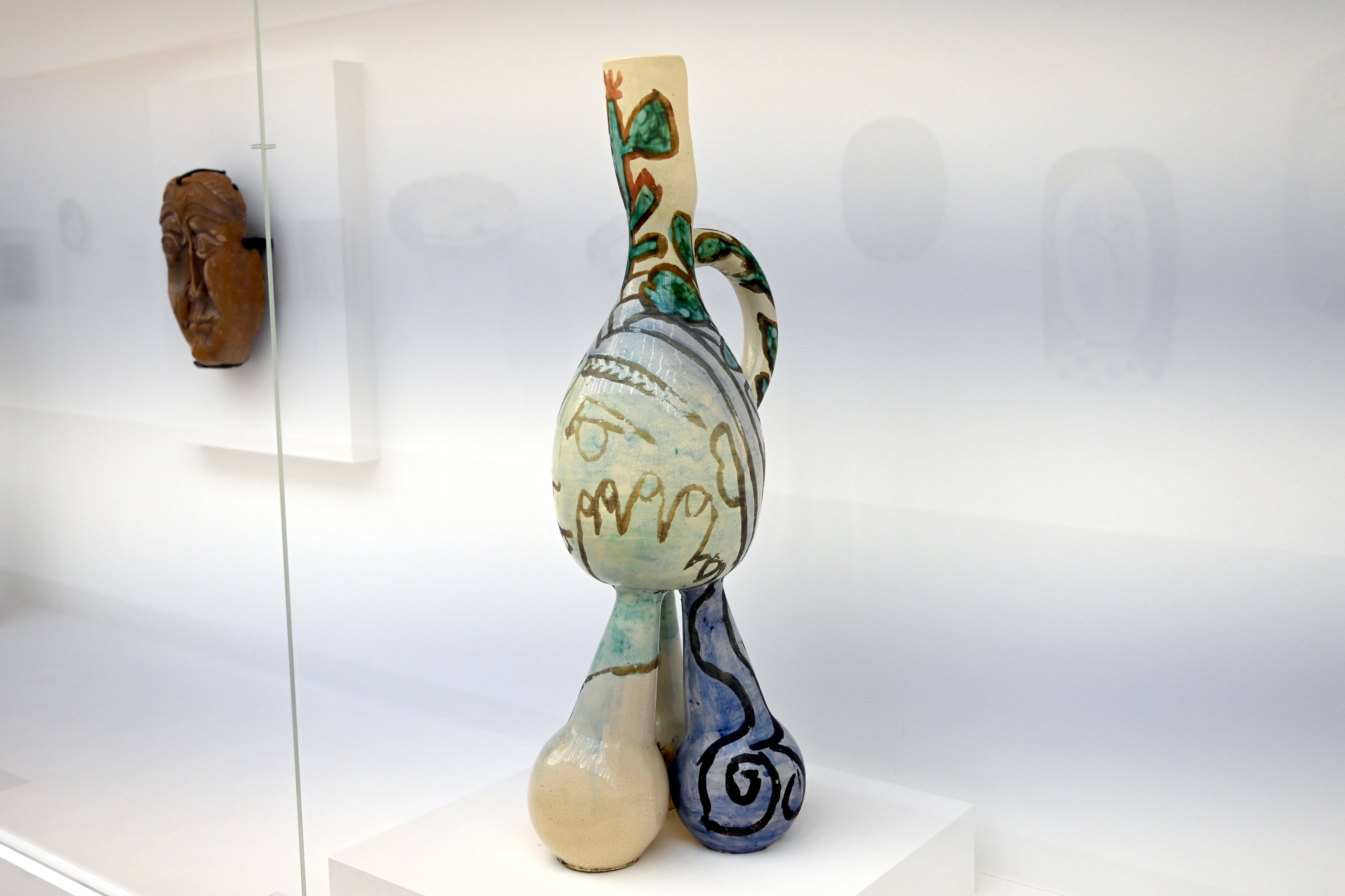 Krug mit einem auf Händen ruhendem Gesicht