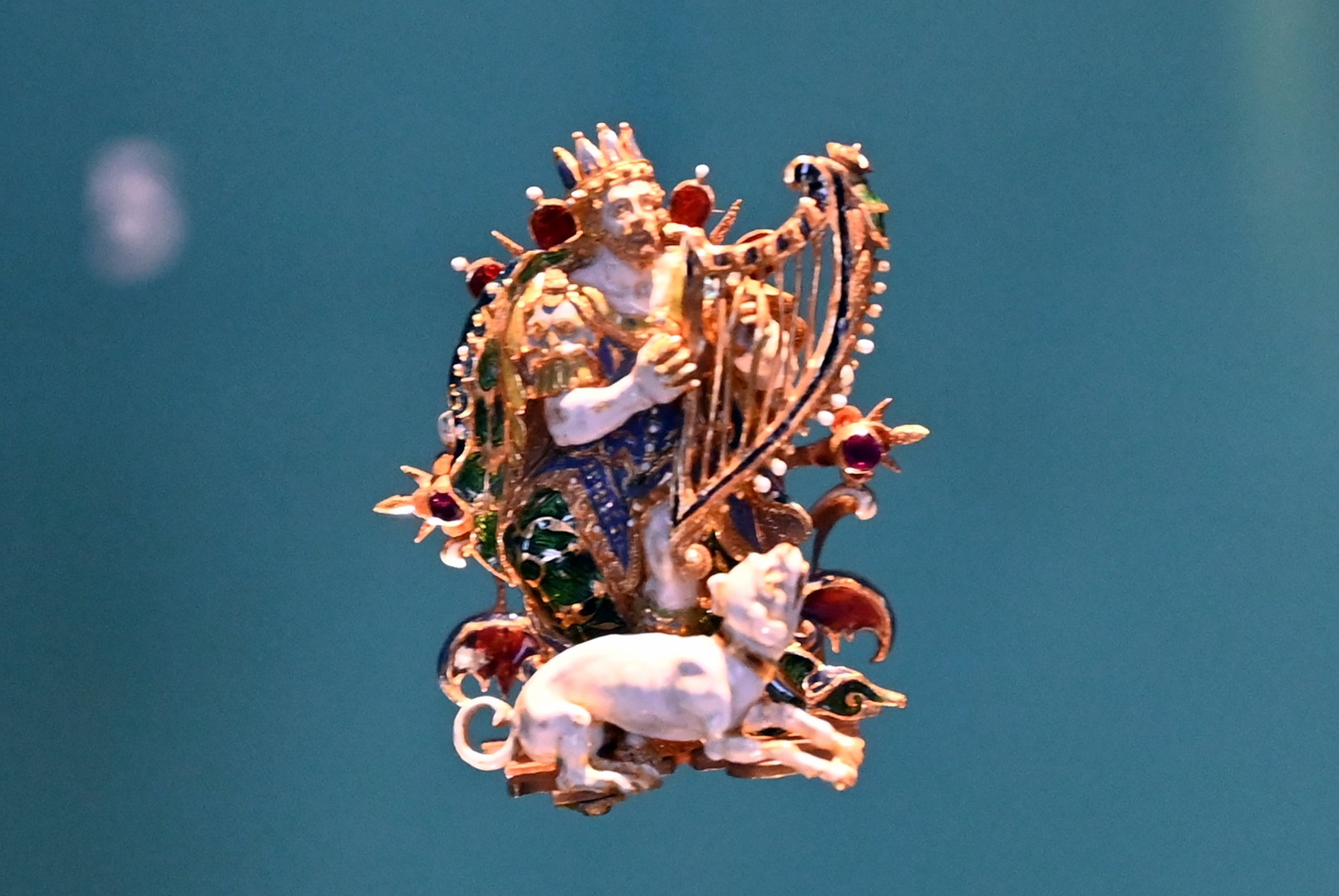 Harfe spielender König David mit Hund