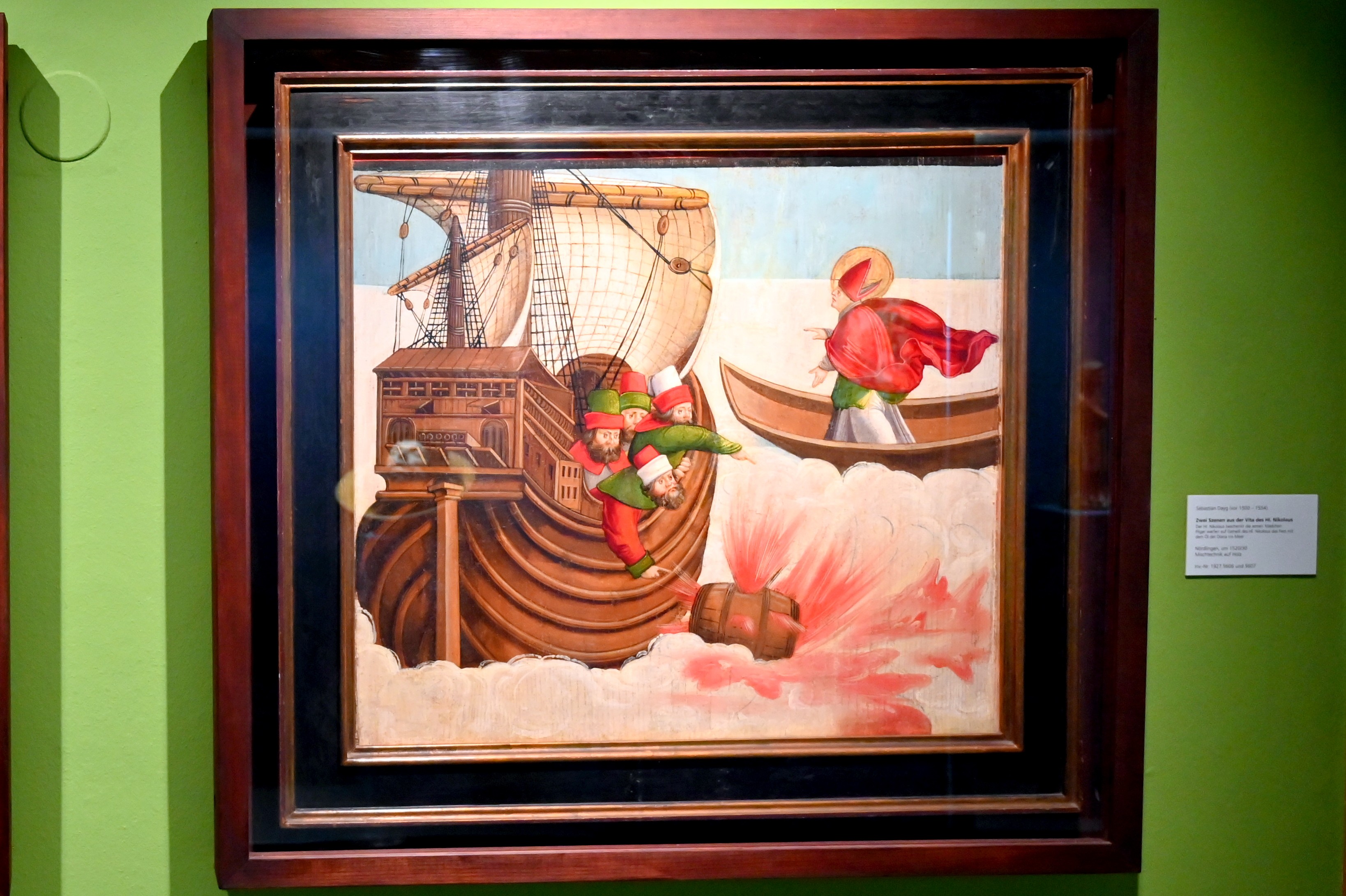 Pilger werfen auf Geheiß des Hl. Nikolaus das Fass mit dem Öl der Diana ins Meer