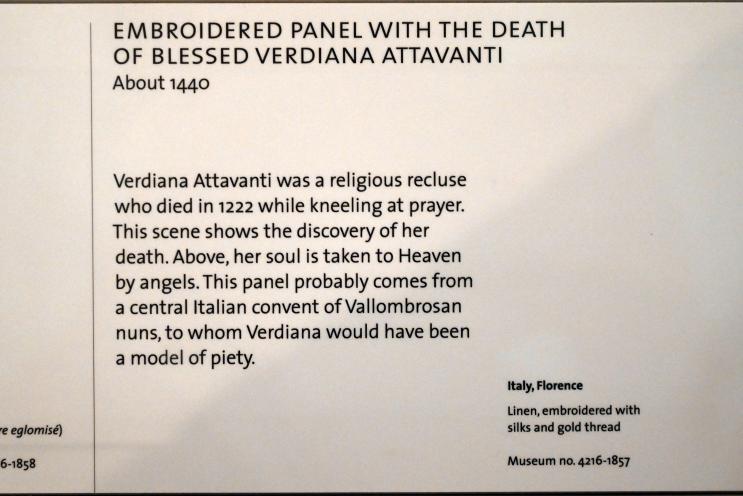 Stickerei Tod der Heiligen Verdiana