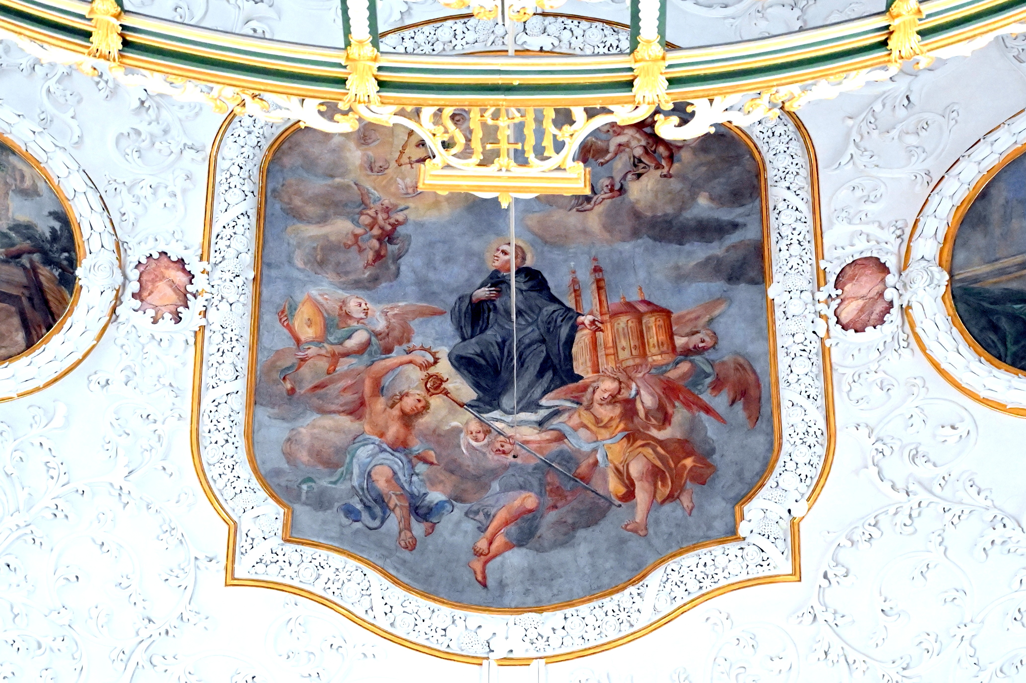 Deckenfresko Der heilige Wunibald in der Himmelsglorie mit einem Modell der Klosterkirche von Heidenheim