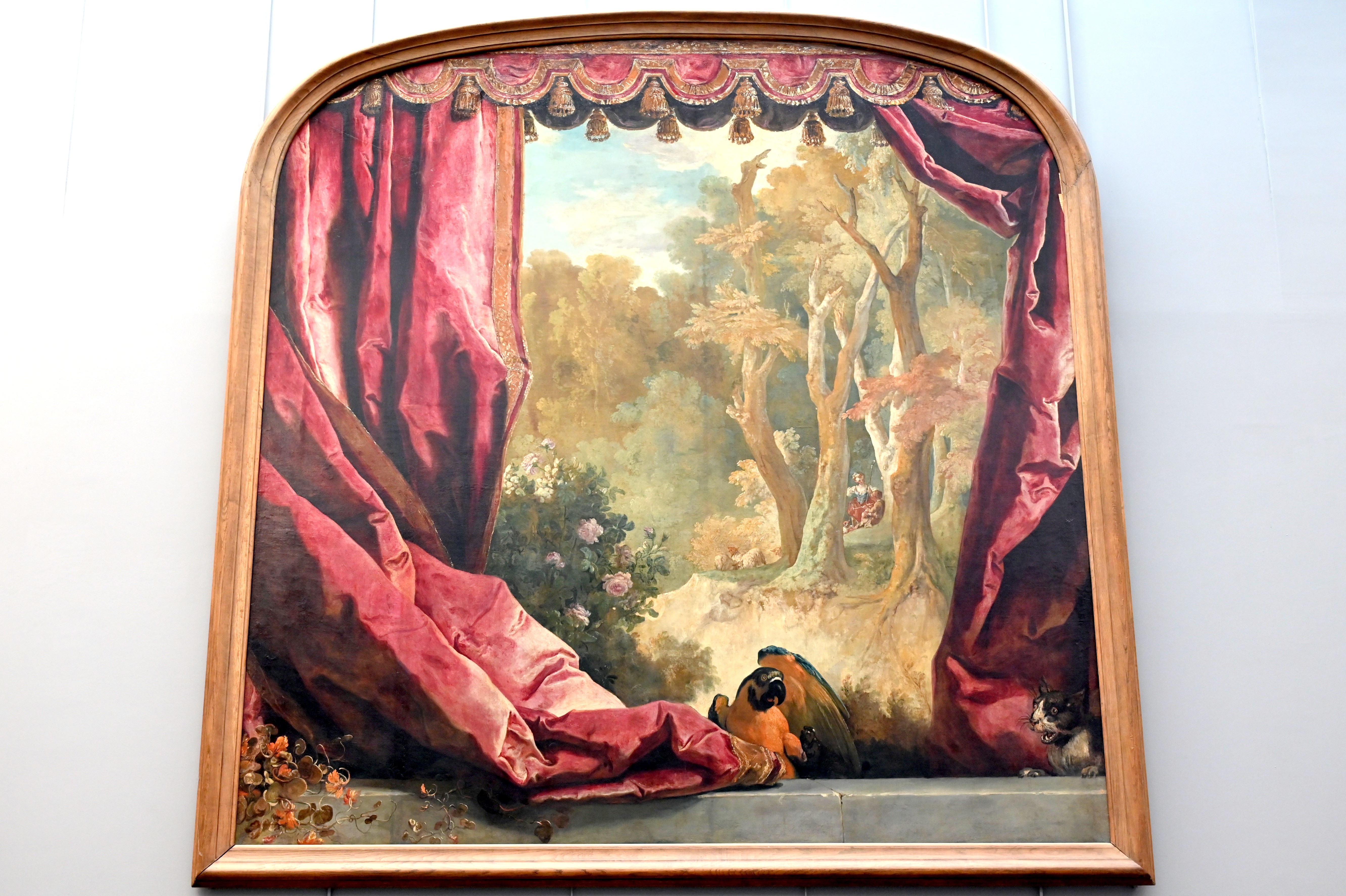 Komposition mit Vorhängen, Landschaft und Tieren