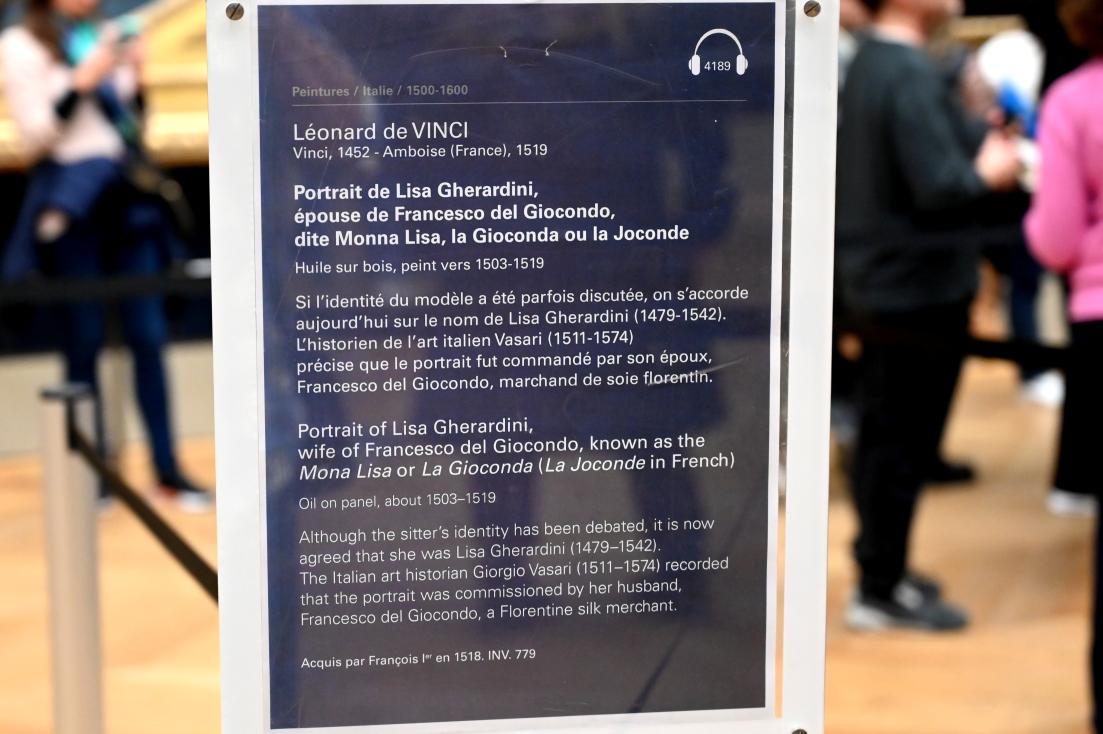 Porträt der Lisa Gherardini, Ehefrau des Francesco del Giocondo, bekannt als Mona Lisa bzw. La Gioconda (französisch la Joconde)