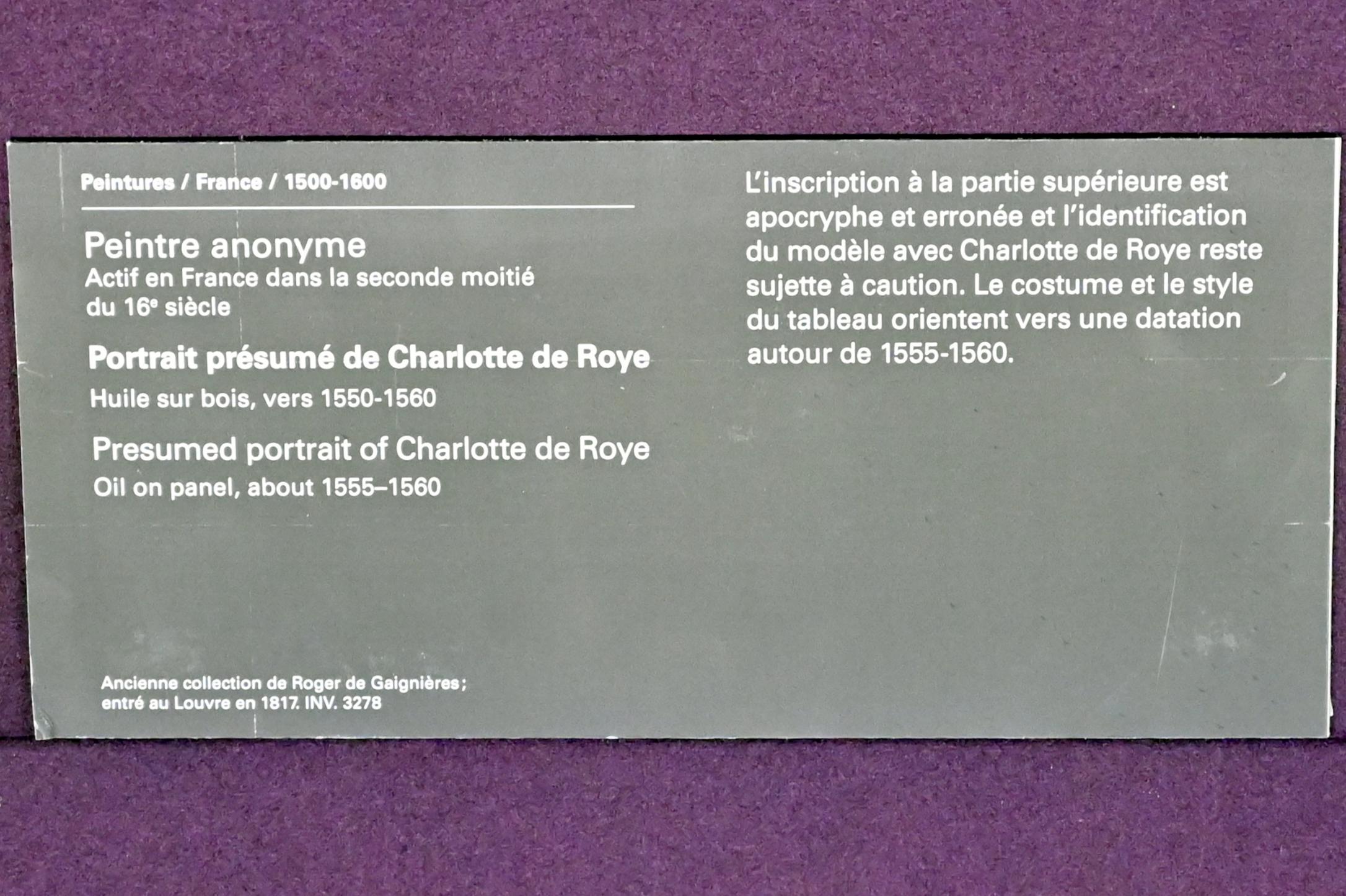Vermutliches Porträt der Charlotte de Roye