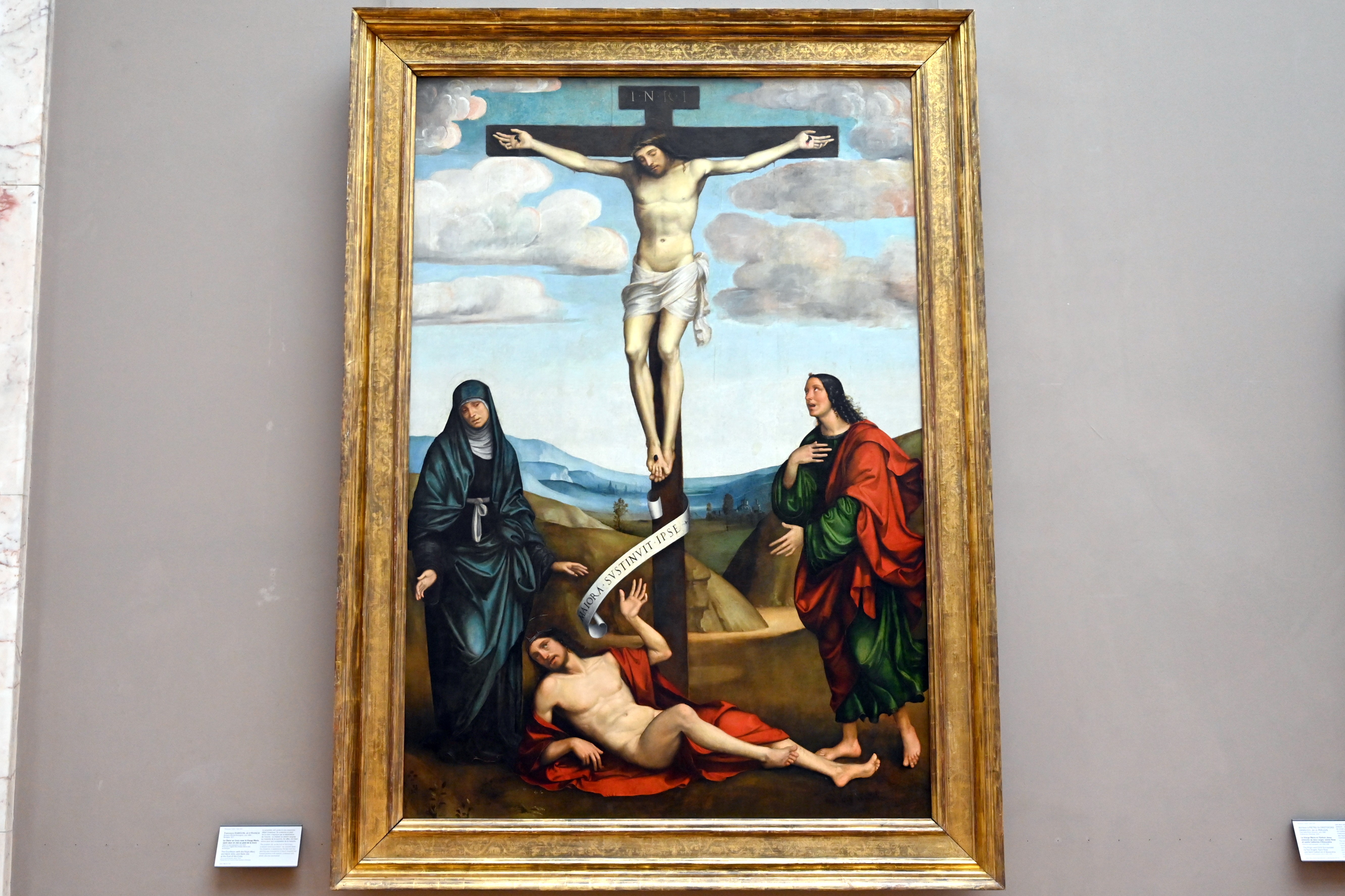 Christus am Kreuz mit der Jungfrau Maria, dem Heiligen Johannes und Hiob am Fuße des Kreuzes