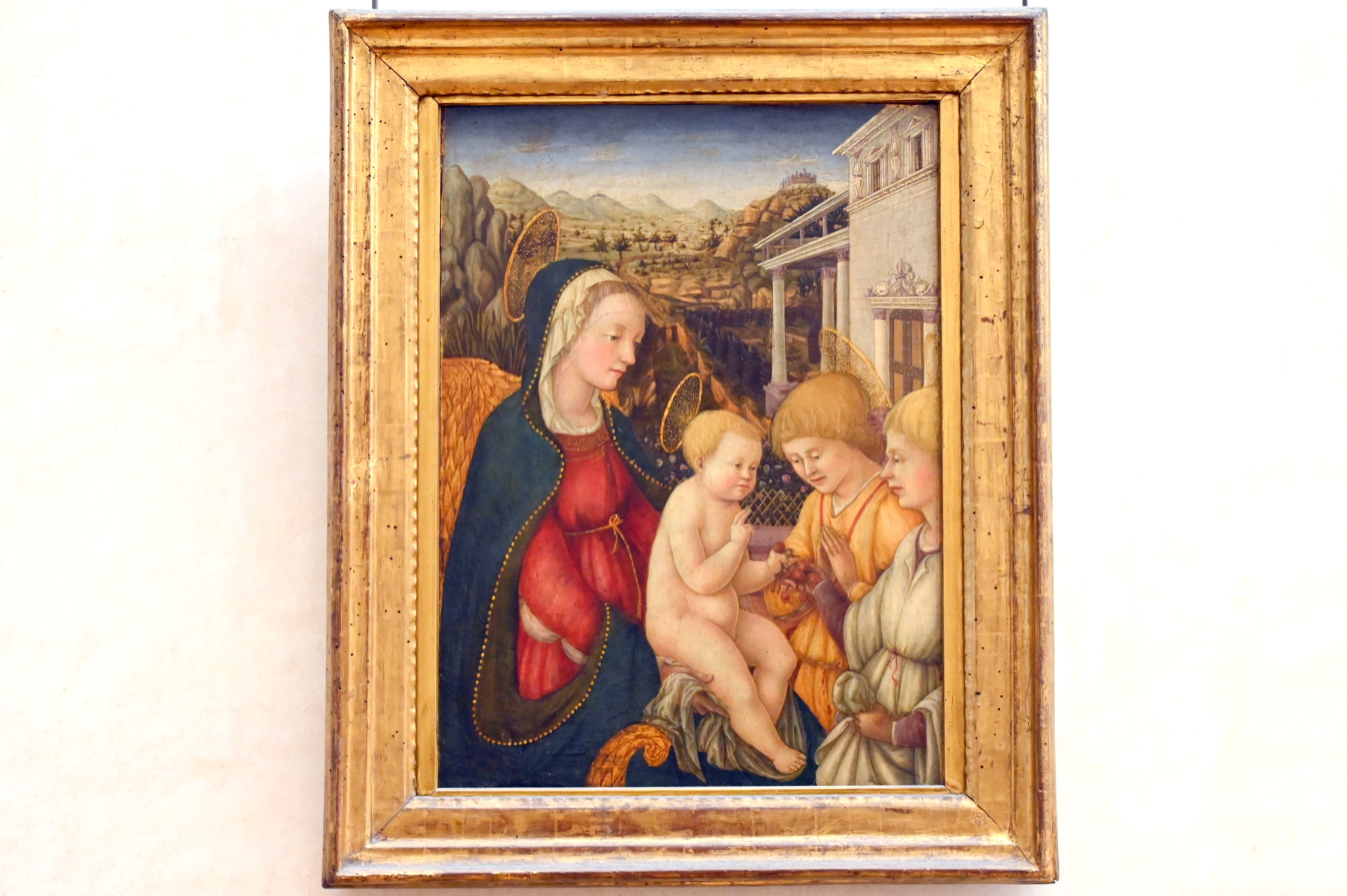 Die Jungfrau Maria und das Jesuskind mit zwei Engeln